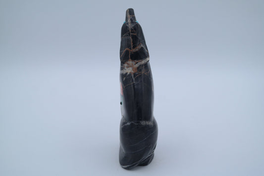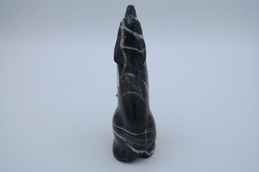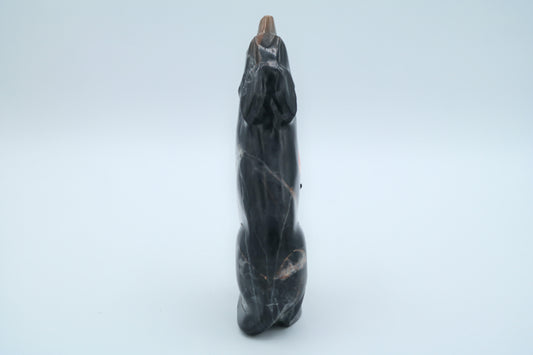 Black and Brown Jasper Wolf Carving with Sunface Inlay