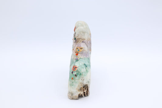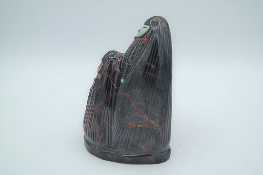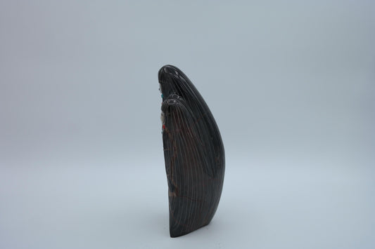Brown and Black Jasper Wolf Carving with Sunface Inlay