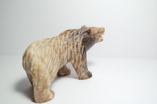 Hand-carved Gemstone candy aragonite bear totem