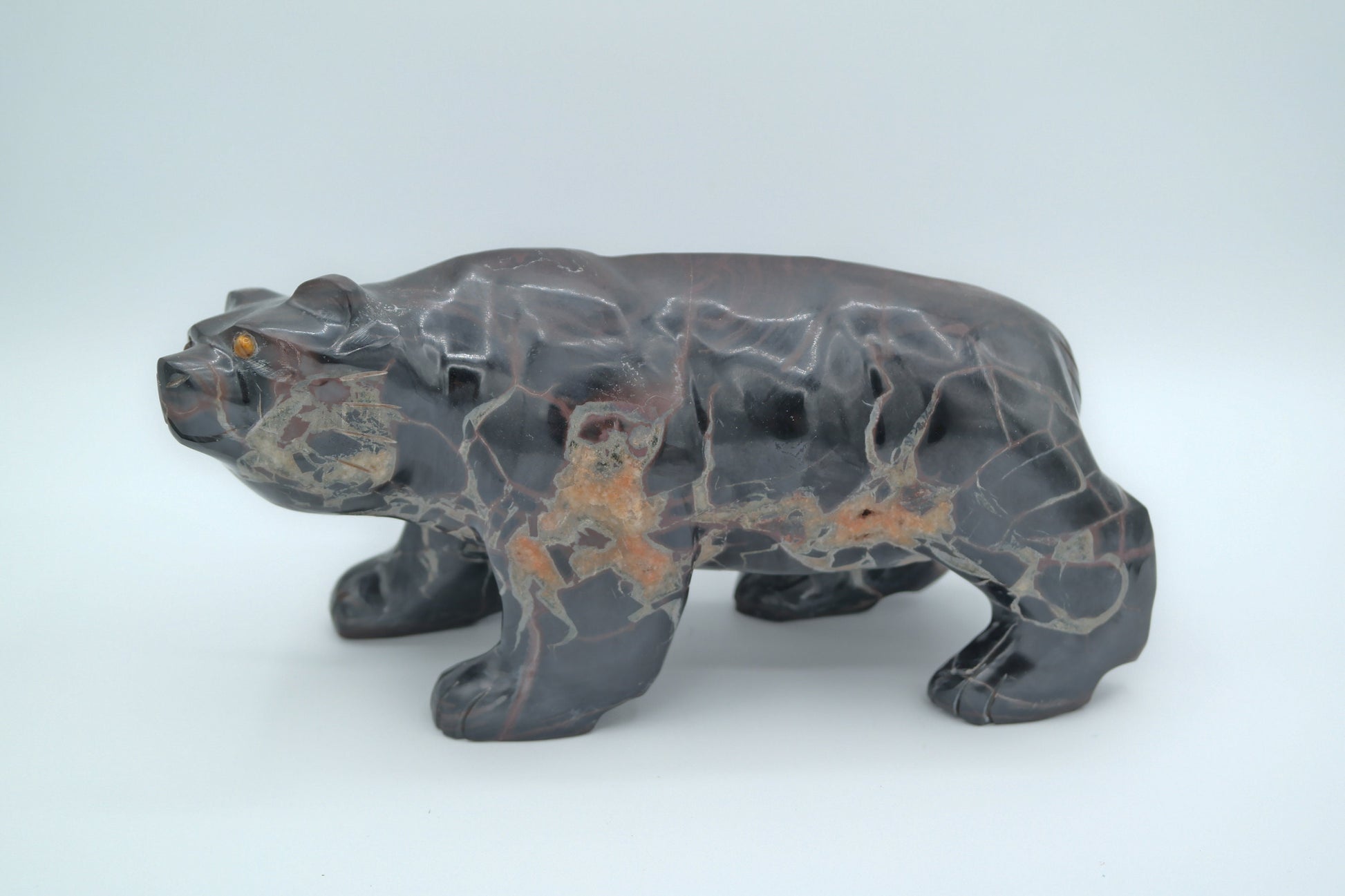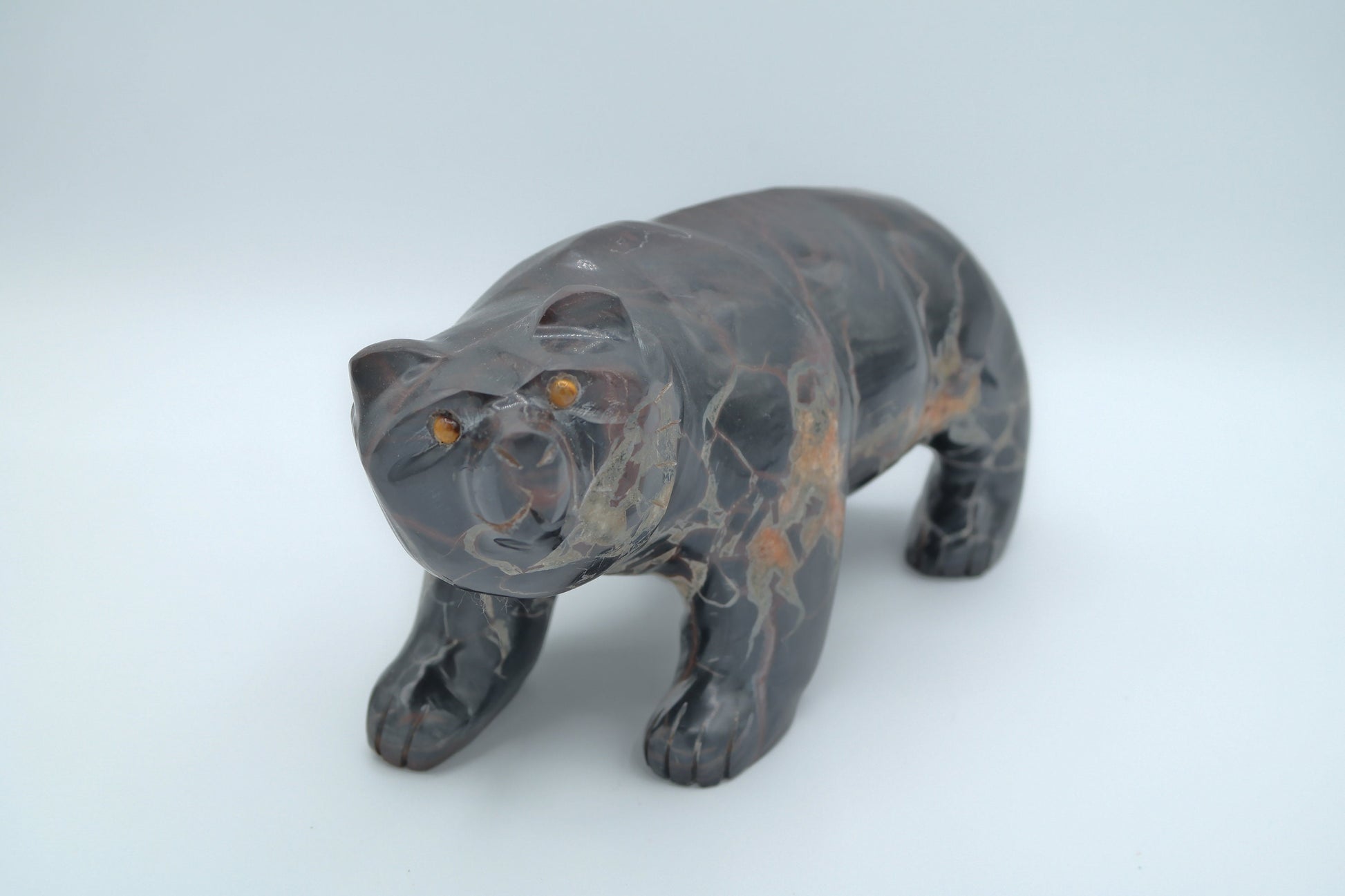 This is a one of a kind, handmade carving made of real stone. This carving is made of Septarian and Tiger's eye for the eyes.